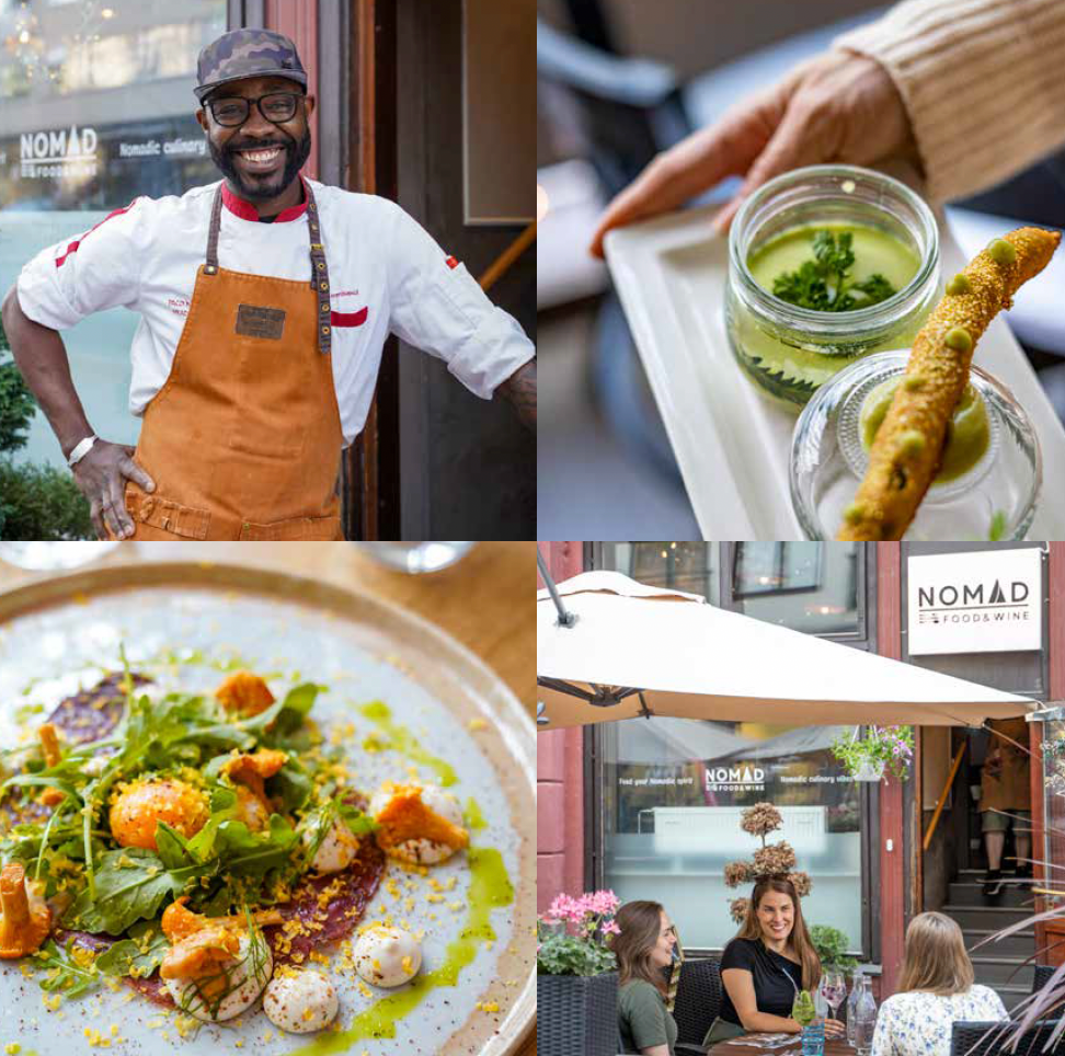 Ravintola Nomadissa yhdistellään italialaisen keittiön tekniikoita ja filosofiaa, afrikkalaisia makuja ja pohjoismaisia vaikutteita – lopputuloksena on lautasten täydeltä elämyksiä ja tarinankerrontaa. Kaiken keskiössä on omistaja Pacon rikas kulinaristinen tausta ja rakkaus hyvään ruokaan. Kristiinankadulla sijaitsevan Nomadin viinilista henkii Italiaa, drinkkeihin sujahtaa esimerkiksi mangoa ja tarjolla on lukuisia erikoiskahveja.